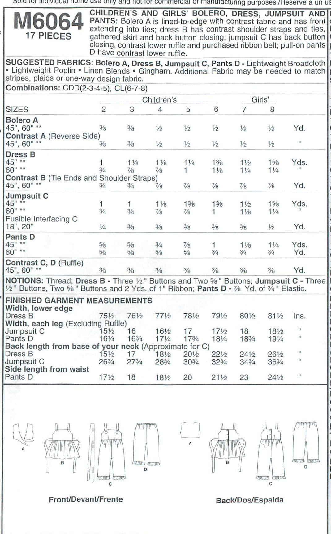 Mccall S M 6064 Sewing Pattern For Girl S Bolero Etsy